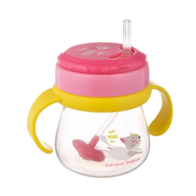 Ten nowoczesny kubek z silikonową rurką i odważnikiem to klucz do niezależnego picia dla dzieci. Bez względu na kąt przechylenia, picie jest proste i kontrolowane. Ruchoma nakrętka pomaga schować rurkę, zapobiegając rozlaniu napoju. Szerokie uchwyty ułatwiają maluchom trzymanie kubka. Idealny towarzysz w domu, w podróży i na spacerze. Przeznaczony dla dzieci od 6 miesiąca życia. Pojemność 250ml.