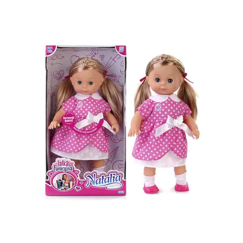 Lalka Natalia to urocza i interaktywna lalka, która potrafi mówić po polsku. Jest to idealny towarzysz dla dzieci, który rozwija ich zdolności językowe i zachęca do kreatywnej zabawy.