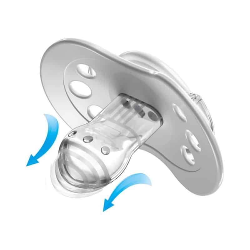 -Silikonowa gumka smoczka jest wzmocniona, dzięki temu odporniejsza na gryzienie. Jest to ważne szczególnie w okresie intensywnego rozwoju ząbków i dziąseł.