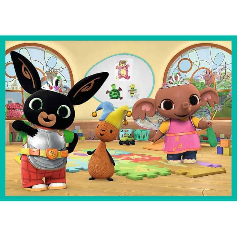 Zapraszamy do świata przygód z ulubionym bohaterem dzieci – Bingiem! Puzzle “Co robi Bing?” to niezwykła kolekcja 10 puzzli w jednym zestawie. Każde z puzzli przedstawia Binga i jego przyjaciół w różnych zabawnych sytuacjach. Odwiedź razem z nimi plażę, ogród, przedszkole i wiele innych miejsc. To doskonała zabawa i świetny sposób na rozwijanie zdolności manualnych oraz koncentracji u maluchów.  Ciesz się wspólnymi chwilami z Bingiem i jego przyjaciółmi, tworząc jednocześnie piękne obrazy z puzzli “Co robi Bing?”.