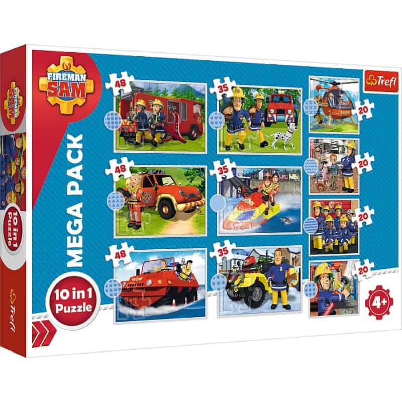Puzzle składające się z 10 niezależnych układanek, zaprojektowane z myślą o wszystkich fanach serialu animowanego Strażak Sam. Po ułożeniu układanek powstaną obrazki o wymiarach 223x156mm oraz 167x156mm. Zróżnicowana liczba elementów pozwala na zabawę zarówno młodszym, jak i nieco starszym dzieciom.