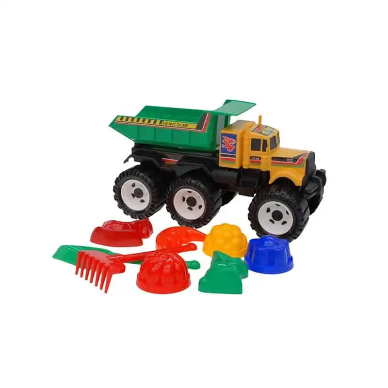 Zestaw składa się z kolorowej wywrotki, która jest idealna do przewożenia piasku, kamieni i innych materiałów budowlanych. Dodatkowo, w zestawie znajdują się różnorodne akcesoria, takie jak łopatka, grabki i foremki w kształcie zwierzątek i elementów budowlanych. Dzięki nim, Twoje dziecko będzie mogło tworzyć unikalne budowle, układać ścieżki, a nawet odtwarzać scenki związane z pracami budowlanymi.