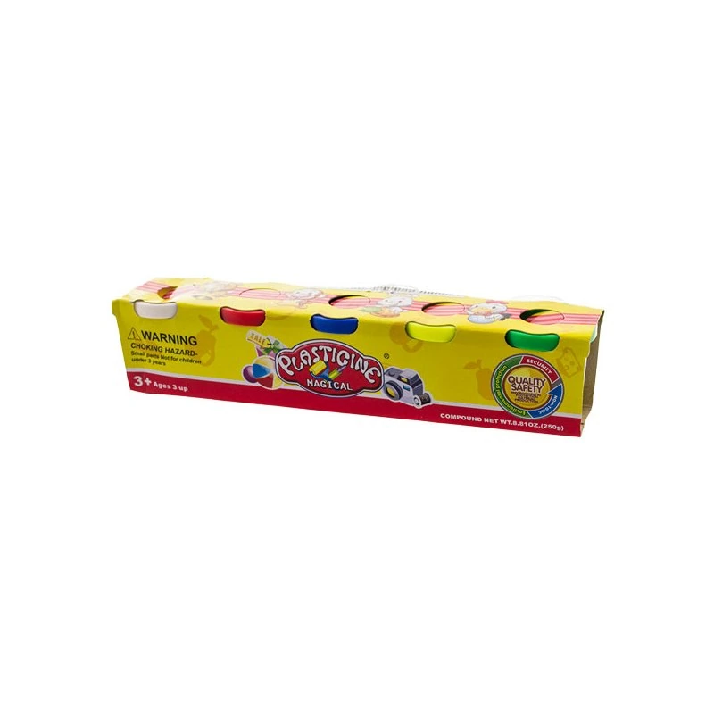 – 5 pojemniczków z ciastoliną w różnych kolorach