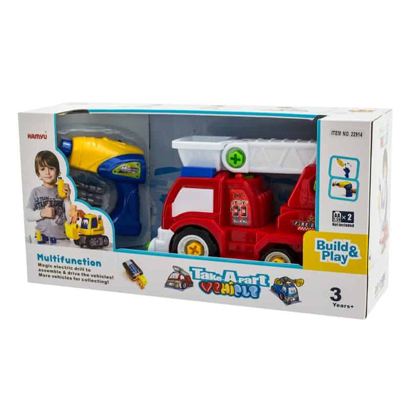 Zestaw zawiera mechaniczną wkrętarkę na baterie z różnymi nakładkami pomagającymi odkręcać poszczególne elementy pojazdu. Po skręceniu pojazdu można założyć napęd wyciągając go z wkrętarki.